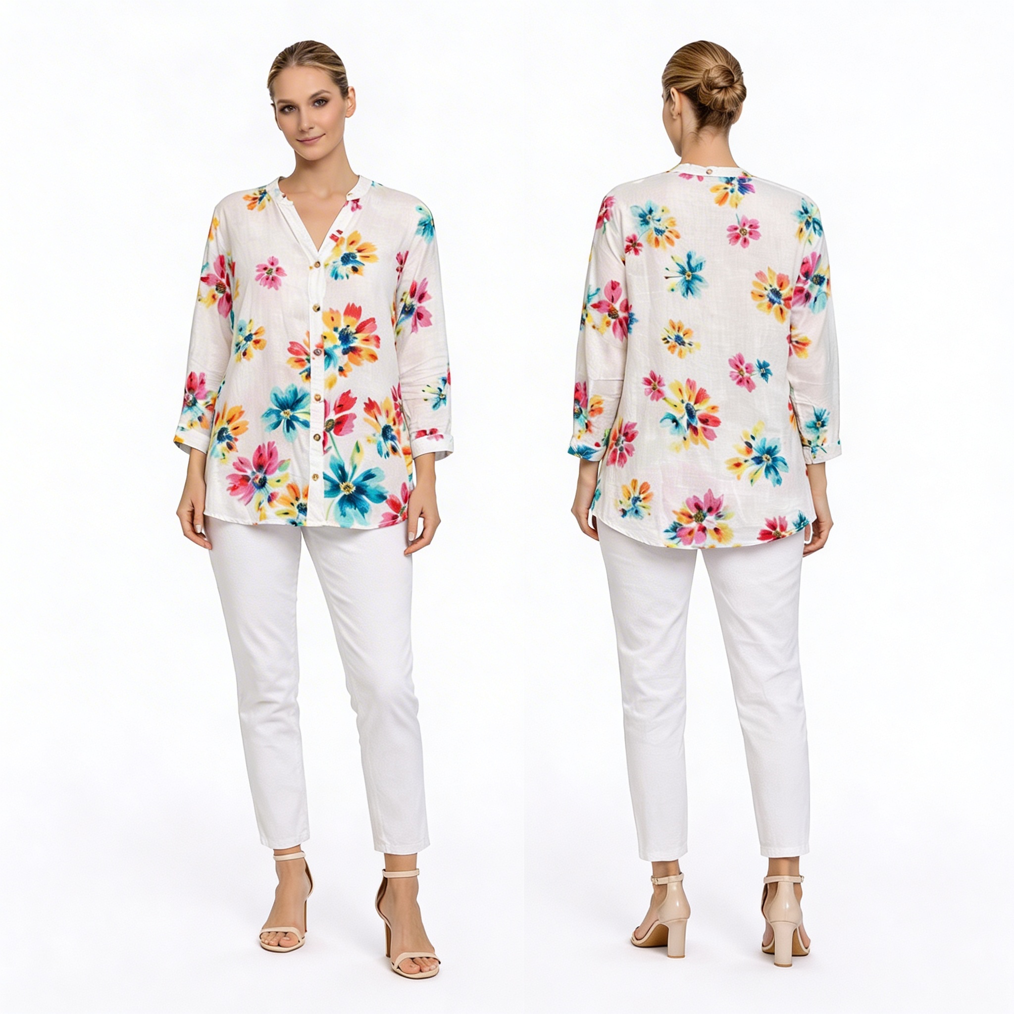 Çiçek Desenli Rahat Kesim Kadın Gömlek